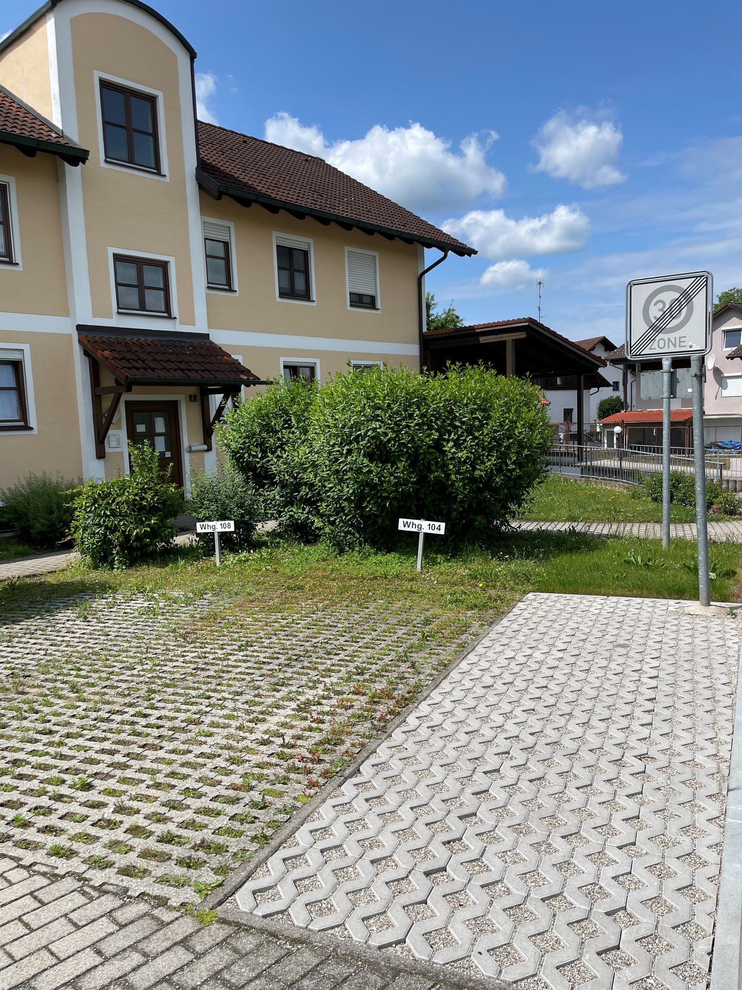 Im Vordergrund zu sehen der der Wohnung zugeordnete Parkpaltz (zusätzlich zum Tiefgaragenstellplatz)